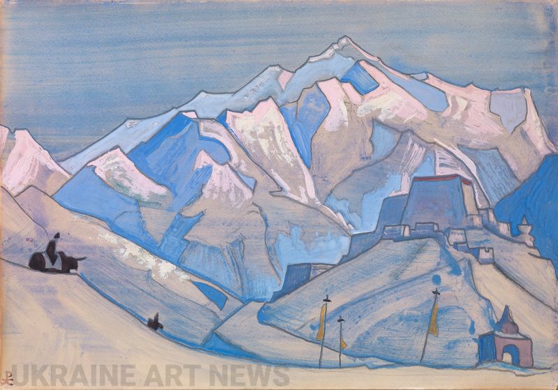 майстерно збалансованими та деталізованими композиціями. Намальована художником у його маєтку в Наггарі в Кулу Долина, деякі з цих картин нагадують про найбільш духовні та містичні місця, які шануються Реріхом , таких як Ладак і Ракопоші. Виставлену на продаж роботу можна визначити як величну Гору Кайлас, котра вважається однією з найсвятіших в Азії.